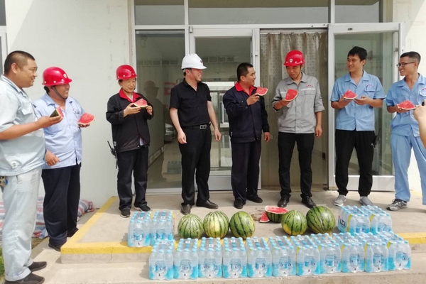 进入三伏天后,一线职工的工作和生活情况时刻牵动着集团领导的心,7月29日上午,集团工会主席韩红喜一行来到药业免费色情片扑热车间,为工作在一线的职工送去矿泉水、西瓜等解暑物品,韩主席同时嘱咐大家在保证做好安全生产工作的同时,一定要照顾好自己的身体,注意劳逸结合和做好防暑工作,同时嘱咐现场的管理人员做好职工后勤保障工作,切实保护好一线广大职工的身体健康。