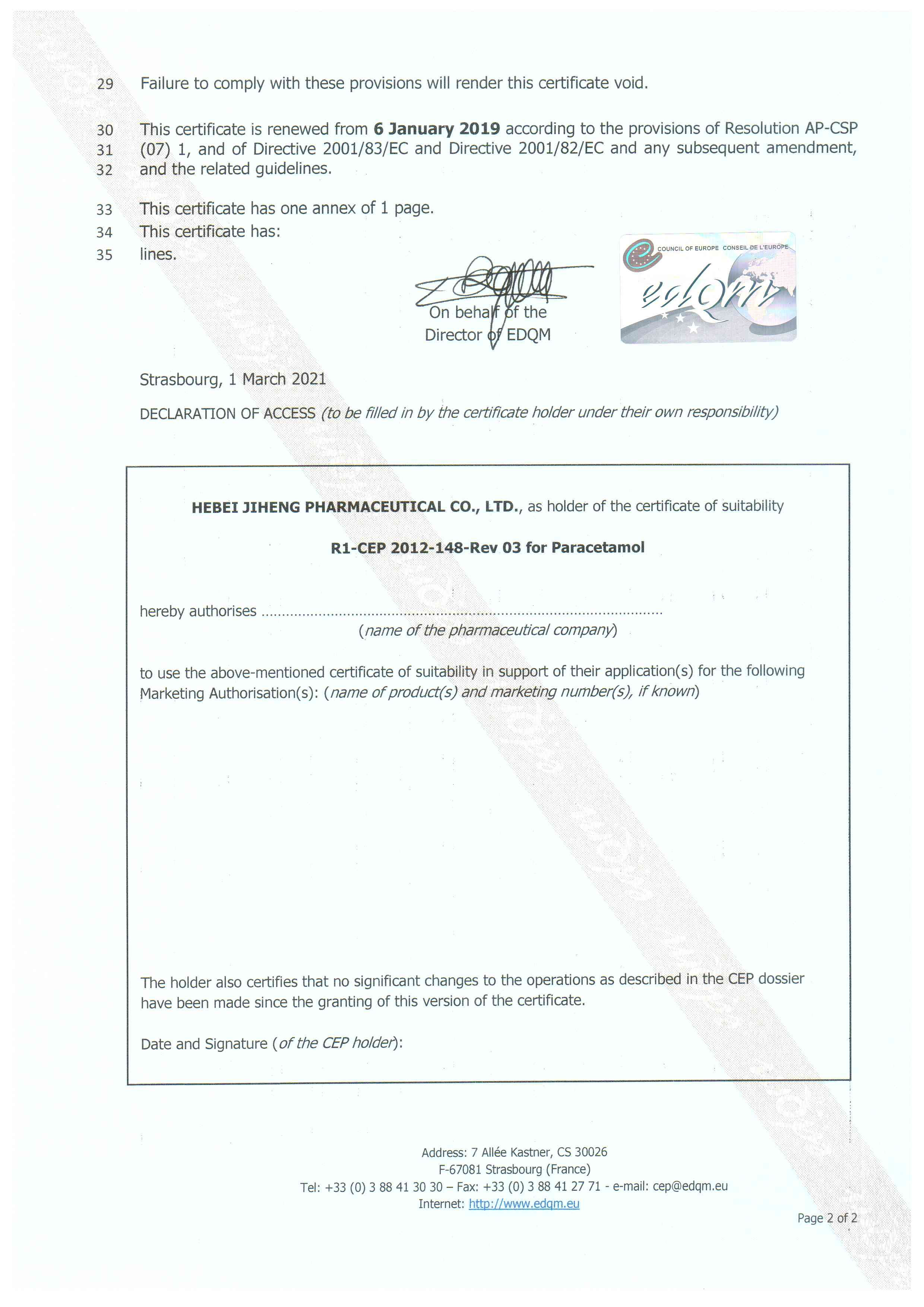 安乃近CEP证书